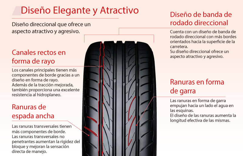 La llanta Yokohama Advan Fleva cuenta con un diseño de banda direccional que le dará un aspecto deportivo a tu auto. Forma parte de la familia Advan, lo que asegura un excelente desempeño a altas velocidades, pero sin descuidar el confort.